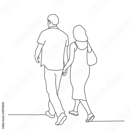 Walking couple, people going away.