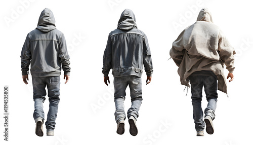 Walking Men in Hoodies and Jeans, Isolated on Transparent Background