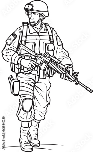 Walking Soldier Holding Firearm Vector Black Logo Armed Soldier Walking Vector Black Logo Icon
