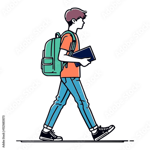 Walking Student: Education, College, University, Back to School, Campus Life, Teenager, Young Boy, Casual, Knowledge, Learning