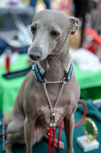 Walking with my beloved dog, Italian Greyhound, in autumn.