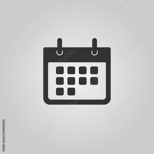 Wall calendar in flat style. Black calendar icon on gray background. Vector illustration.