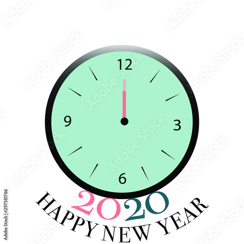 Wall Clock with peach and green colour and year 2020 at right 12 o'clock and Happy New Year