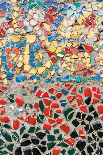 wall covered with broken ceramic pieces
