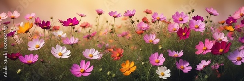 wall of bright cosmos flowers banner background