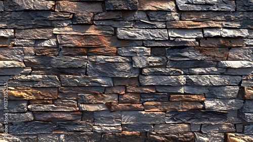 Wall with Faux Stone Veneer, Featuring Realistic Stone Texture and Varied Color Tones. Stone wall texture