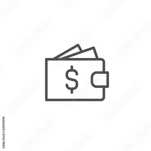 Wallet vector icon, Dollar sign purse money concept line outline symbol linear thin symbol, flat design for web website mobile app.