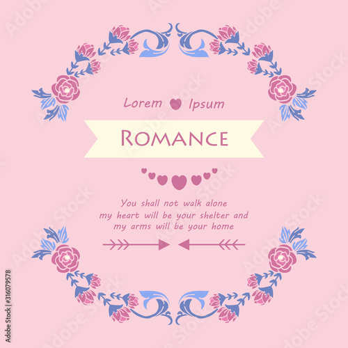 Wallpaper design for romance greeting card, with cute style of pink floral frame. Vector