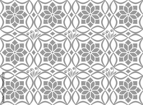 Wallpaper in Baroque style, damask. A seamless vector background. Gray and white texture Floral ornament.