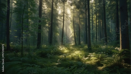 Wallpaper natural summer forest and sun rays penetrating through trees