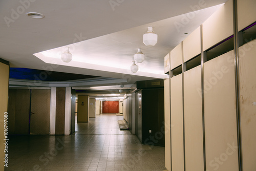 Walls, deserted corridors, windows and doors of research institutes, industrial buildings, universities.
