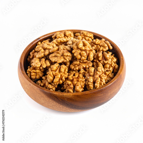 walnuts in wooden bowl isolated on white background
