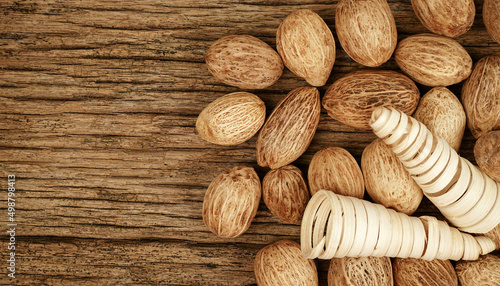 Walnuts on a wooden background.