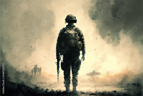 War Veteran Reflecting on Sacrifices Made on the Battlefield - AI Generated