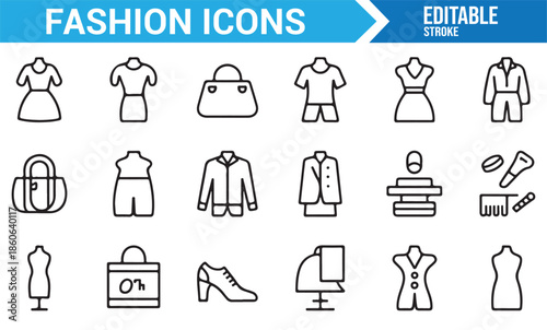 Wardrobe and fashion accessory outline icons