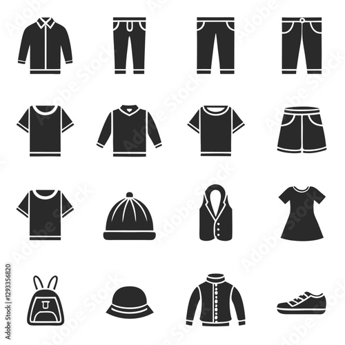 Wardrobe Essentials Icon Collection Solid Vector Set