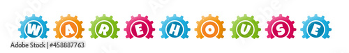 Warehouse - text written inside colorful gears on white background