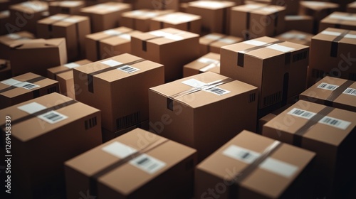 Warehouse filled with stacked cardboard boxes ready for shipping