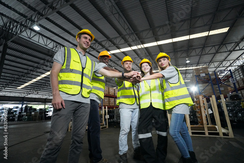 Warehouse Industrial supply chain and Logistics Companies inside. Warehouse workers checking the inventory. Products on inventory shelves storage. Worker Doing Inventory in Warehouse.