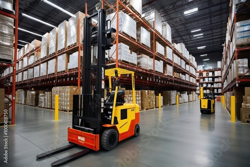 Warehouse Retail Space Overflowing with Shelves, Forklifts, and Shipping Logistics