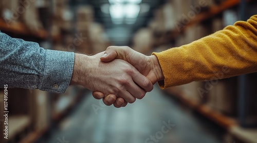 Warehouse workers shaking hands while holding digital tablet 4k image