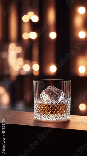 Warm Bokeh Bar Scene: Whiskey on Wooden Counter