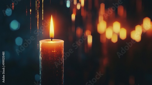 Warm Candle Flame Against Dark Background