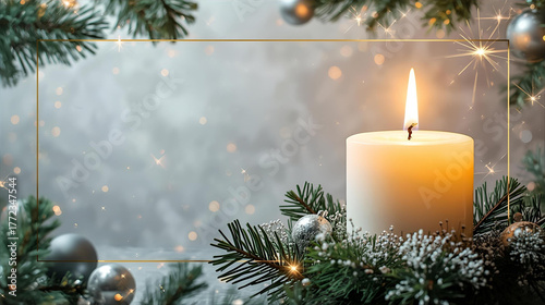 Warm candle glow amidst festive christmas decorations a cozy scene