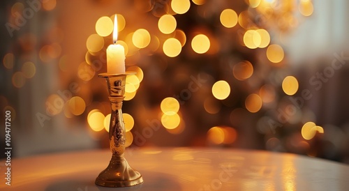 Warm candlelight with festive bokeh background for cozy seasonal ambiance