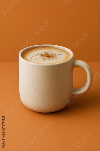 Warm Ceramic Coffee Mug Filled with Frothy Cappuccino