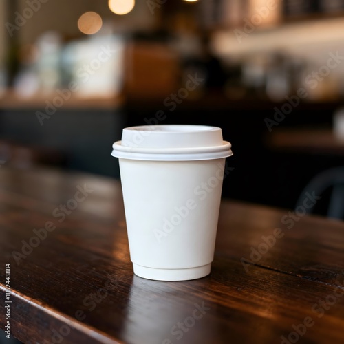 Warm Coffee Cup on Wooden Table in Soft Morning Light Natural Cafe Ambience