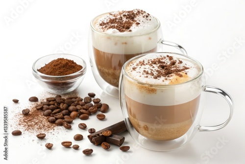 Warm Coffee Drinks Topped With Frothy Cream and Chocolate Generative AI
