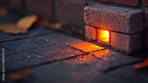 Warm Glow of Light Through Brick on Paved Pathway at Dusk