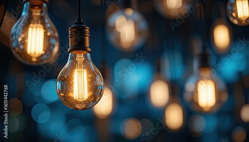 Warm glow of vintage Edison bulbs illuminates a modern, moody space, creating an inviting and sophisticated ambiance for creative thinking and collaborative brainstorming.
