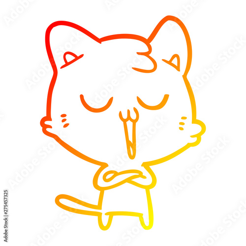 warm gradient line drawing cartoon cat singing