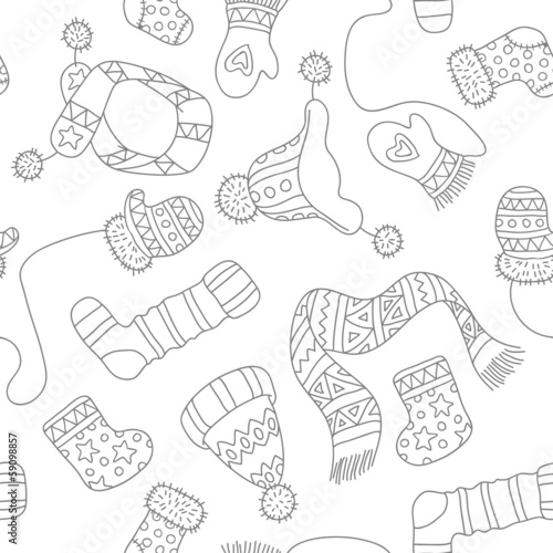 Warm knitted accessories, vector pattern
