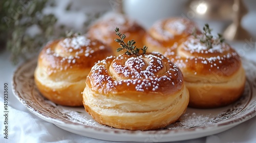 **Warm Swedish Cinnamon Rolls With Cardamom Flavor, Golden Crust, Sugar Dusting, Served On Rustic Plate For Cozy Scandinavian Bakery Ad --Ar 16:9 --S 280** - @Darya (Relaxed)