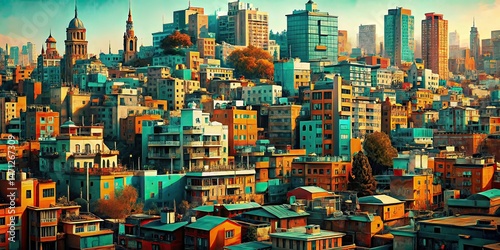 Warm Teal Abstract Cityscape Pattern Vintage Photo