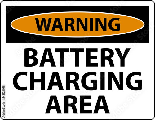 Warning Battery Charging Area Sign On White Background