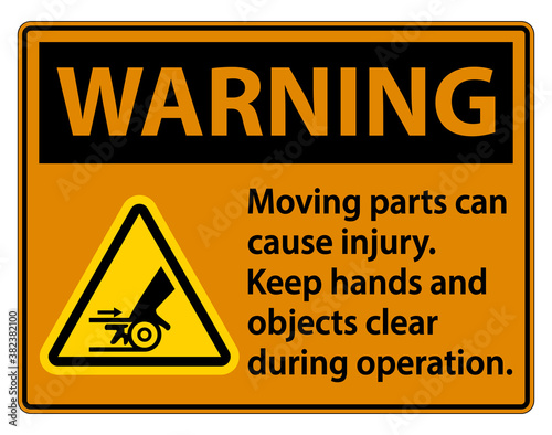 Warning Moving parts can cause injury sign on white background