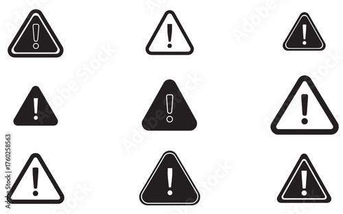 Warning, precaution, attention, alert icon, exclamation mark in the triangle shape. Symbol or icon for web site, logo, UI design. Flat vector illustration