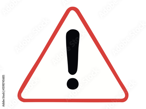 Warning road sign with black exclamation mark in red triangle isolated on white background, graphic illustration. Concept of general caution, road safety alert, attention signal, design element