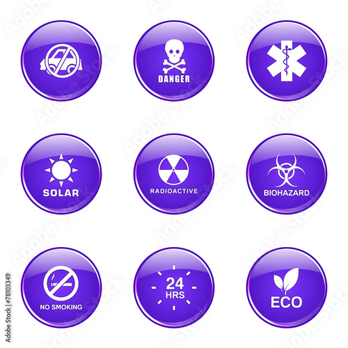 Warning Sign Violet Vector Button Icon Design Set
