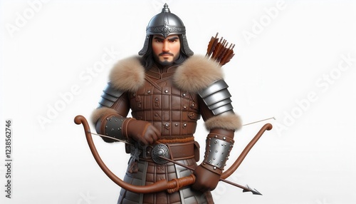Warrior archer in traditional armor fantasy realm digital art isolated background heroic concept