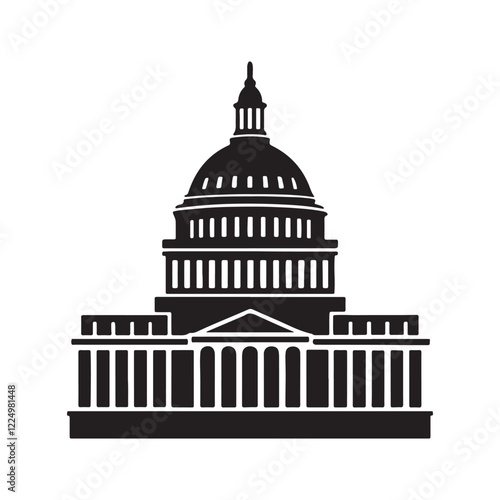 Washington capitol building silhouette, black and white silhouette, vector and illustration