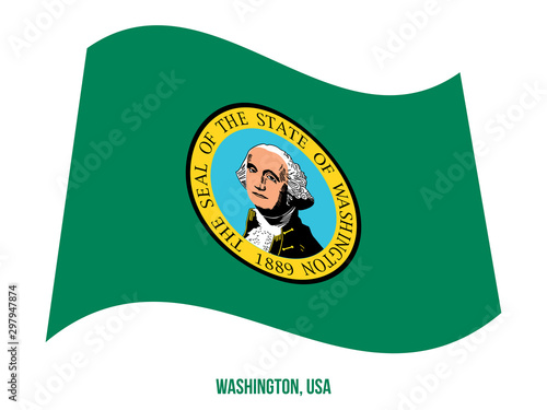 Washington Flag Waving Vector Illustration on White Background. USA State Flag