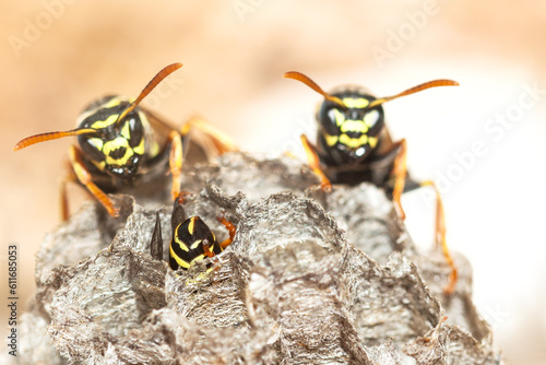 Wasp's Nest. Paper wasps are active in their nests Selective Focus.