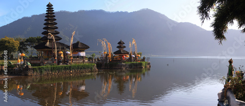 Wassertempel auf Bali, Pura Ulun Danu Bratan oder Pura Bratan, Insel Bali, Bedugul, Indonesien, Panorama