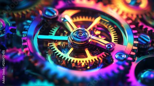 Watch of gears. Colored clock. 3D.