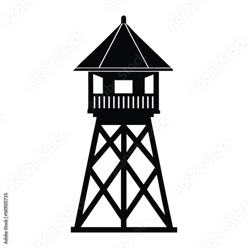 Watch Tower Silhouette Black Vector Security Observation Military Surveillance Defensive Lookout Structure
